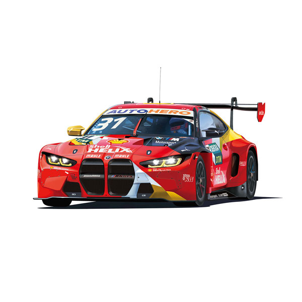 【実車について】 BMWが2021年に発表したM6の後継車となるGT3レース用マシンがM4GT3です。 エンジンは2993cc直列6気筒でMツインパワーターボを装備し590馬力を発生します。 トランスミッションはXtrac6速を搭載。ボディはボンネットの大きなエアアウトレットを持ち、リアにはスワンネックステイで取り付けられるウイングが装備されています。 2022年には世界のレースチームにデリバリーが開始され、ヨーロッパ、アメリカの各GT3カテゴリーのレースで活躍。 日本でもスーパーGTのチームが導入しています。2022年シーズンはドイツのツーリングカーレース、DTMに参加したシューベルト・モータースポーツ・チームのドライバー、シェルドン・ファン・デル・・リンデが見事チャンピオンを獲得してその性能の高さを証明したのです。 【商品について】 モデルは2022年のドイツ・ツーリングカー選手権、DTMで年間チャンピオンに輝いたシューベルト・モータースポーツチームのシェルドン・ファン・デル・リンデがドライブしたBMW M4 GT3を再現したプラスチックモデル組み立てキットです。 スケールは1/24で仕上がり全長約200mm、全幅約90mm。 迫力あるボディスタイルを実感たっぷりに再現しています。 さらに、室内はロールケージなどもしっかりとモデル化。 現代のレーシングマシンならではのスイッチ類がたくさん装備されたステアリングや室内装備を密度あふれるパーツ構成で演出します。 シャーシ下面もリアのディフューザーの形状等までしっかりと再現。 GT3マシンの姿を手にとって確かめていただけるキットです。 マーキングは2022年のチャンピオンに輝いたカーナンバー31のレッドベースにイエローやブラックで塗り分けられたカラースキームをデカールで再現しています。 レースファンには見逃せないキットです。 【主な特徴】 ●1/24スケールで2022年のドイツDTMチャンピオンBMW M4 GT3を再現 ●チャンピオンマシン、カーナンバー31のマーキングを大型のデカールで再現 ●外観はもちろん、ロールバーが張り巡らされたインテリアも詳細にモデル化 ●完全新設計・完全新金型 パッケージサイズ:325×67×215mm 製品サイズ:全長約200mm The BMW logo and the BMW wordmark are the trademarks of BMW AG and are used under License. The BMW license is applied to Beemax Macau Ltd.