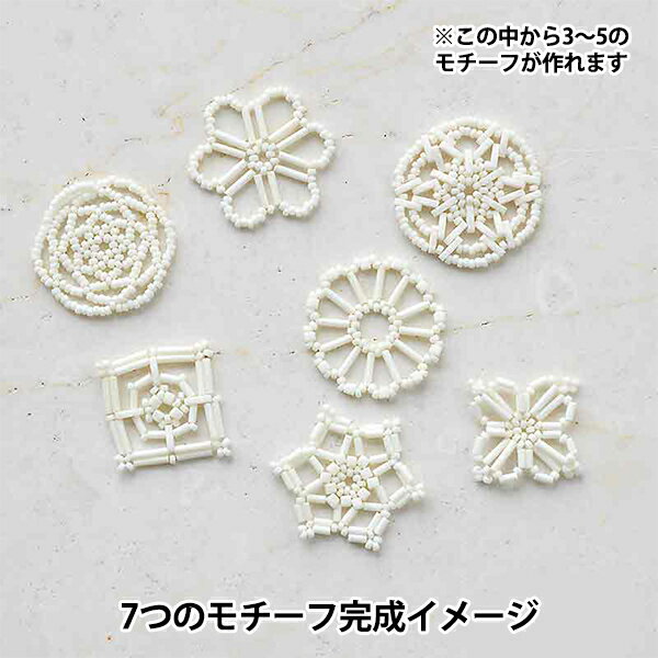 ビーズキット 『ビーズレーシング アイボリー H7590//1』 MIYUKI ミユキ テグスと針で作るビーズの新しい楽しみ方 ビーズレーシングは、テグスと針でつくる「ビーズレース編み」という新たな楽しみ方のこと。 色や形、大きさなど種類豊富なビーズを使うことで、同じパターンであっても、がらりと雰囲気が変わります。 ひとつだけで、耳飾りに。長くつないで、ネックレスに。丸くつないで、ドイリー(小さな敷物)に。四角くつないで、マットに。 小さなモチーフを隙間時間に作りながら、何に仕立てるか考える。 そんなマイペース手芸、はじめませんか。 ※材料はモチーフ「3〜5個分」となっており、基本の7つのモチーフは全て作ることが出来ません。 予めご了承くださいますよう、お願いいたします。 ご入用の方は、別途お買い求めください。 [ビーズ編み レース編み ビーズセット] ◆セット内容:丸特小ビーズ/スレンダービューグルビーズ/クォーターティラビーズ/スクエアビーズ/テグス1号/ビーズ針 ◆ご用意いただくもの:はさみ/ものさし/ライター/不要なハガキなどの厚紙 ◆素材:ガラス/ナイロン/鋼 ◆日本製 ※モニターによって実物のお色と若干異なる場合がございます。 【手芸用品・毛糸・生地の専門店 ユザワヤ】