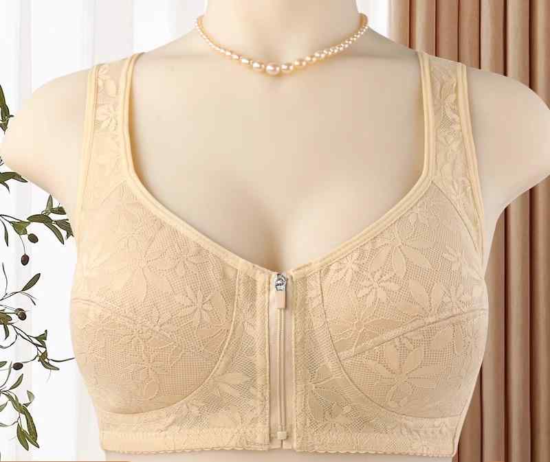 ブラジャー 大きいサイズ ミセス 快適 フロント ジッパー 前開き レディース 夏 薄手 涼しい 通気性 レース プッシュアップ 下着 柔らかい ベージュ 紫