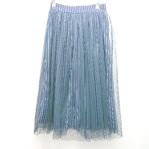 ◇ LOSICARIE ロシカリエ ストライプ ウエストゴム チュール ロング ギャザー スカート サイズM ネイビー レディース E 【中古】