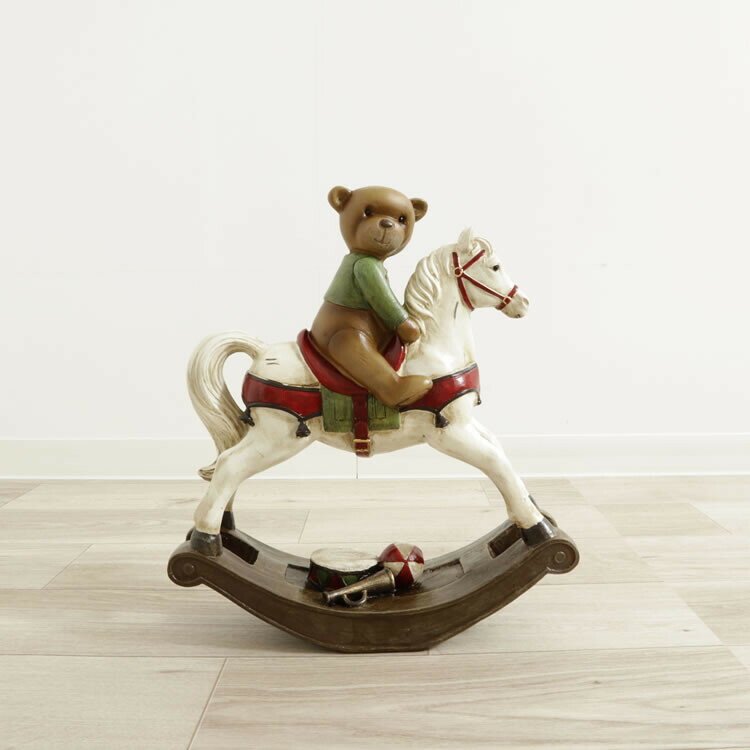 ディスプレイとしてかわいい♪ 置物 ロッキングホース&クマ オブジェ 置き物 アンティーク エレガント