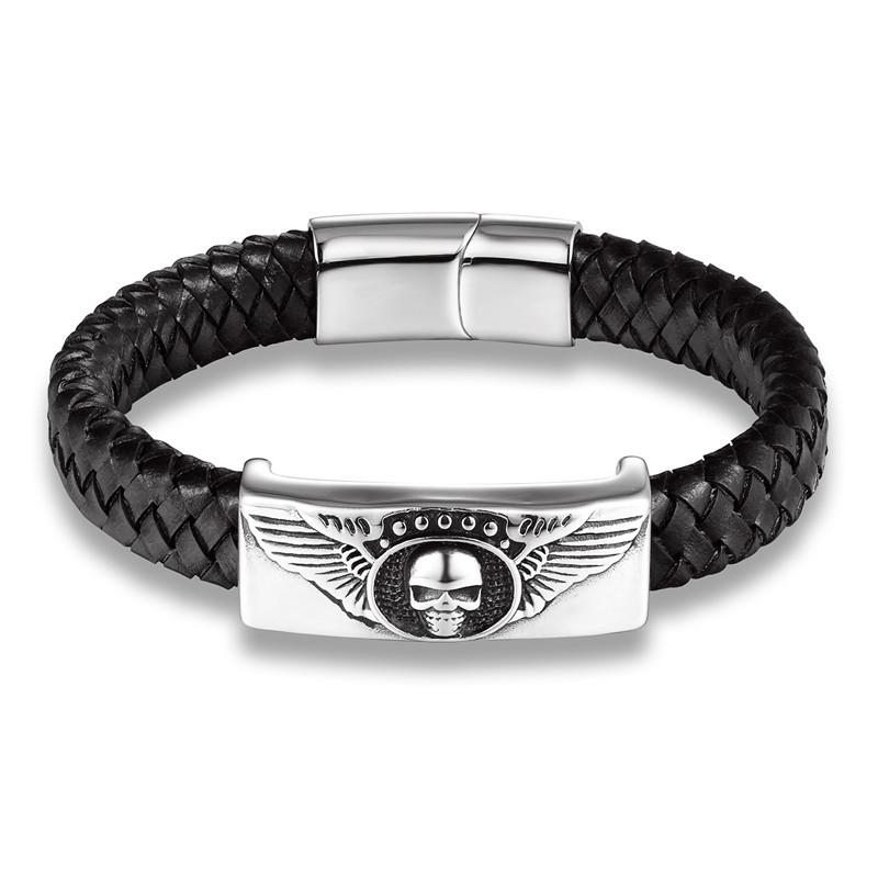ブレスレット メンズ 男性用 チタン鋼 スカル ドクロ 髑髏 骸骨 編み込み レザー 幾何学 模様 幾何柄 ロック パンク スタイル アクセサリー(x2)