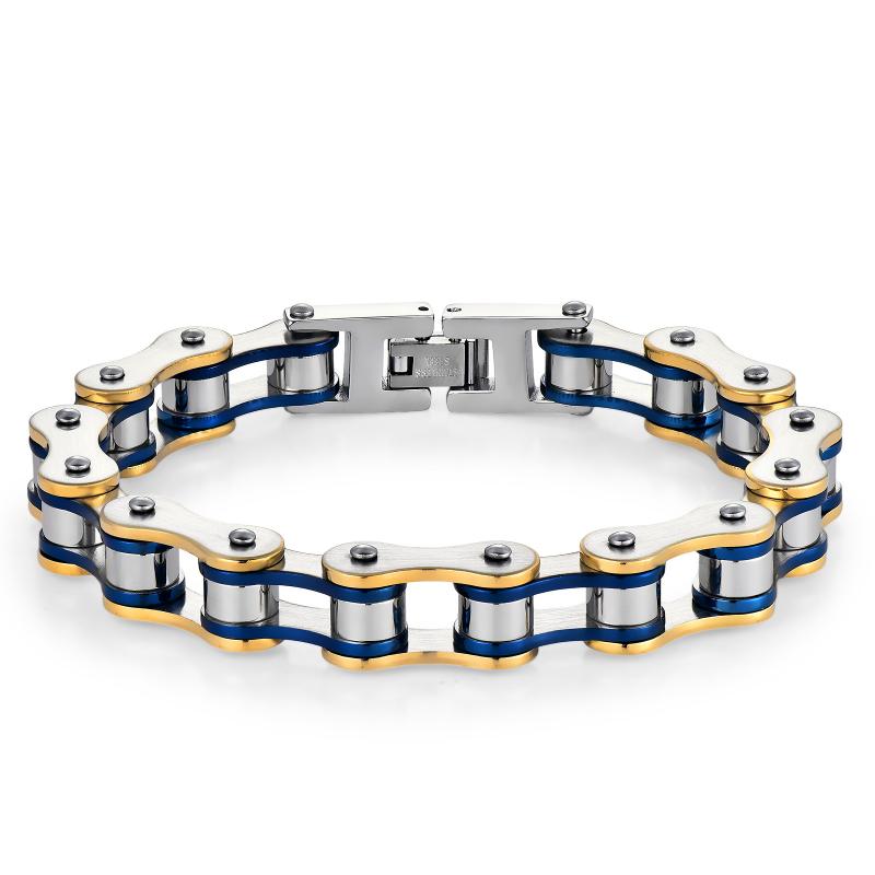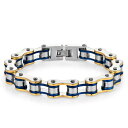 ブレスレット 男性用 ステンレス バイクチェーン ブラック & ゴールドカラー バイカー ロック パンク スタイル