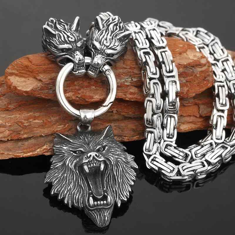 ネックレス メンズ 北欧 バイキング オオカミ 狼 ステンレス ペンダント 個性的 アニマル モチーフ アクセサリー チタン 鋼 チョーカー 男性用 紳士 ファッション ジュエリー クール 強め ハード ロック パンク スタイル