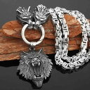 ブレスレット メンズ 男性用 ステンレス 狼 オオカミ ウルフ ヘッド チェーン ヴィンテージ バイカー ロック パンク スタイル 記念日 誕生日 プレゼント 贈り物