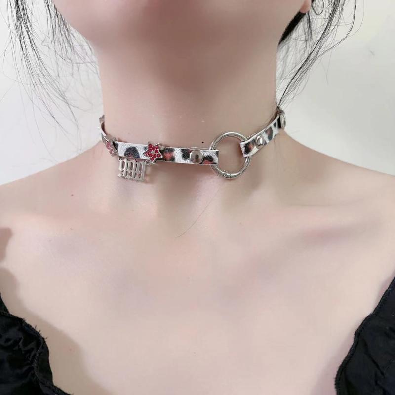 チョーカー レディース 女性用 レザー 革 スイートクール ロック パンク スタイル カラフル スター 五芒星 ラインストーン クロス 十字架 アルファベット イニシャル ネックレス アクセサリー 普段使い おしゃれ