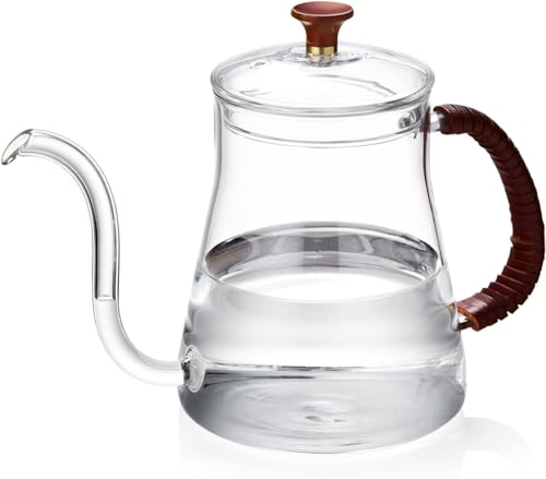 ポカロティー ドリップポット コーヒー ケトル 細口ケトル 耐熱ガラス やかん 680ml 細口グースネックポット コーヒーポット 直火対応 ホウケイ酸ガラス製 ハンドドリップコーヒー用ドリップポット 蓋付き 水差し ドリップ式コーヒー