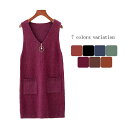 ロングニットベスト レディース ベスト Vネック ニットワンピース 無地 重ね着 定番 ニット ナチュラル ノースリーブ カジュアル 大人 ハンサム シンプル