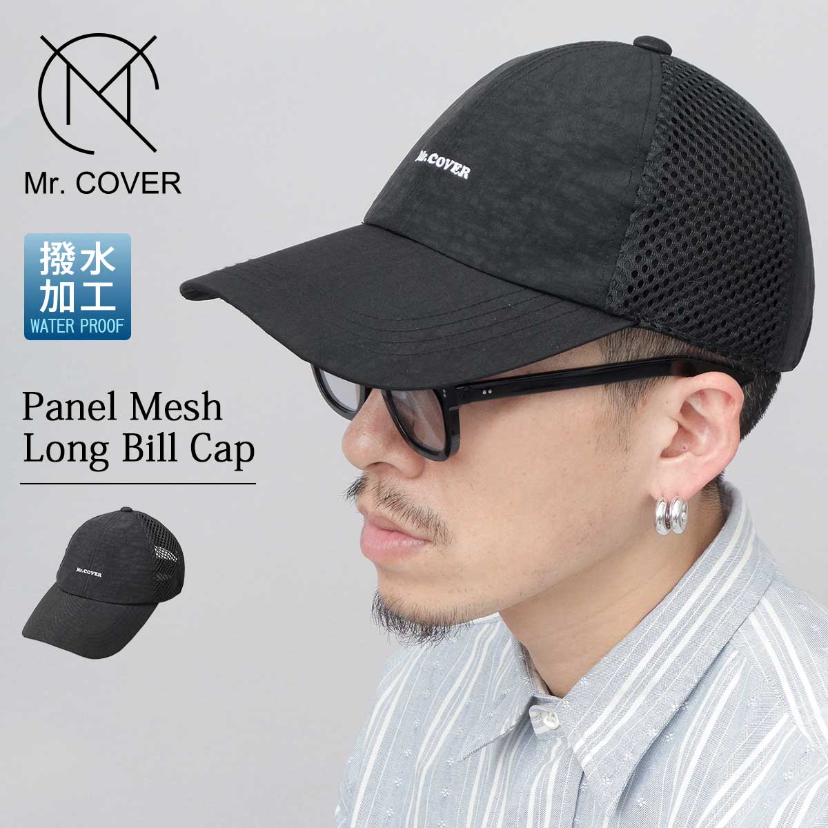 メッシュキャップ ロングビルキャップ メンズ レディース 撥水 キャップ 通気性 軽量 春 夏 アウトドア スポーツ ゴルフ ランニング 帽子 つば長 ブラック 黒 シンプル ロゴ 刺繍 ミスターカバー Mr.COVER
