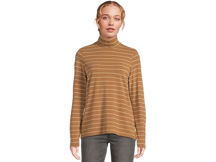 (取寄) エルエルビーン レディース ソフト ストレッチ スーピマ タートルネック ロング スリーブ ストライプ L.L.Bean women Soft Stretch Supima Turtleneck Long Sleeve Stripe Toasted Coconut/Boulder