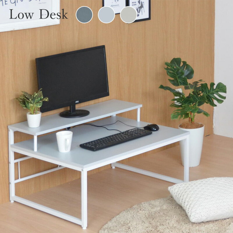 ローデスク 幅80 パソコンデスク ロータイプ おしゃれ [ pc パソコン 2段 pcデスク ロータイプパソコンデスク 机 テーブル ローテーブル 在宅ワーク テレワーク モニター台付き 80cm幅 コンパクト デスク ロー 仕事 書斎 勉強 リビング学習 リビング 一人暮らし 食事 ]