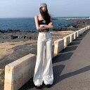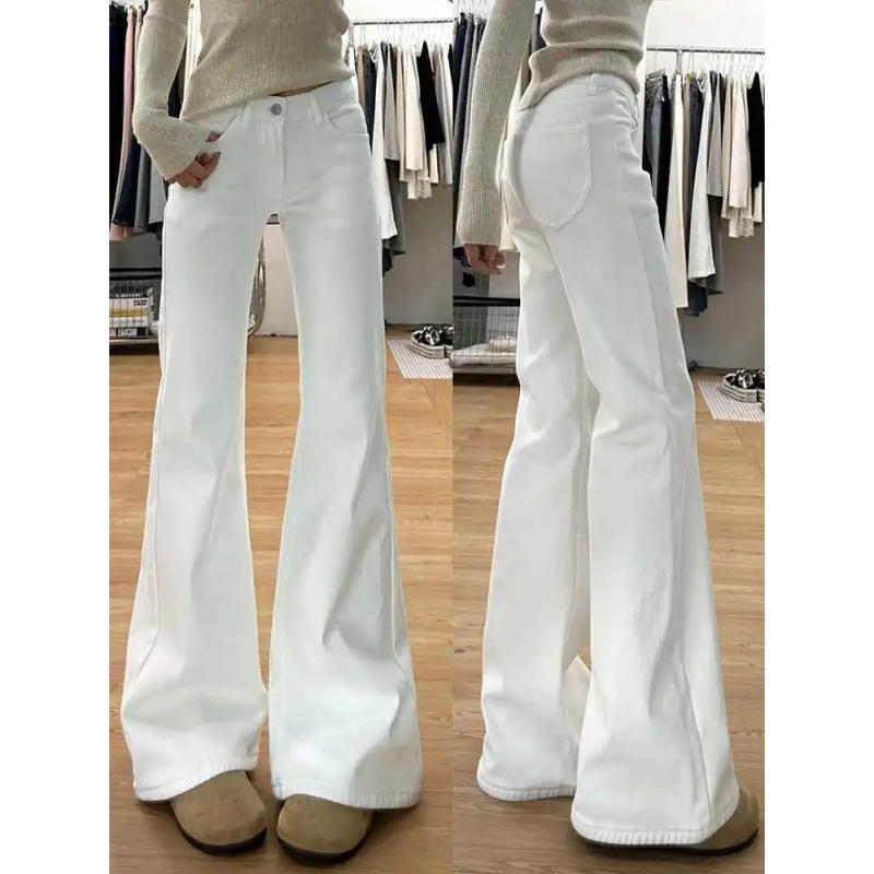 デニム レディース ローライズ ブーツカット ジーンズ XSサイズ~2XLサイズ ホワイト ブラック 無地 70~140斤 ゆったり 伸縮性なし 韓国風 アメカジ きれいめ かわいい