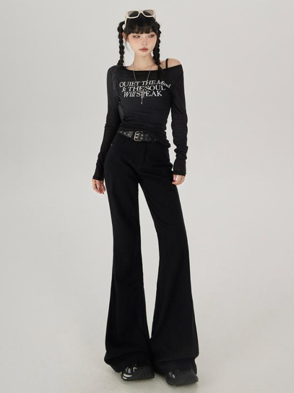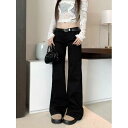 ジーンズ レディース ローライズ ブーツカット ブラック デニム レトロ スタイル スリム 美脚 ストレート 日韓 カジュアル 黒 綿