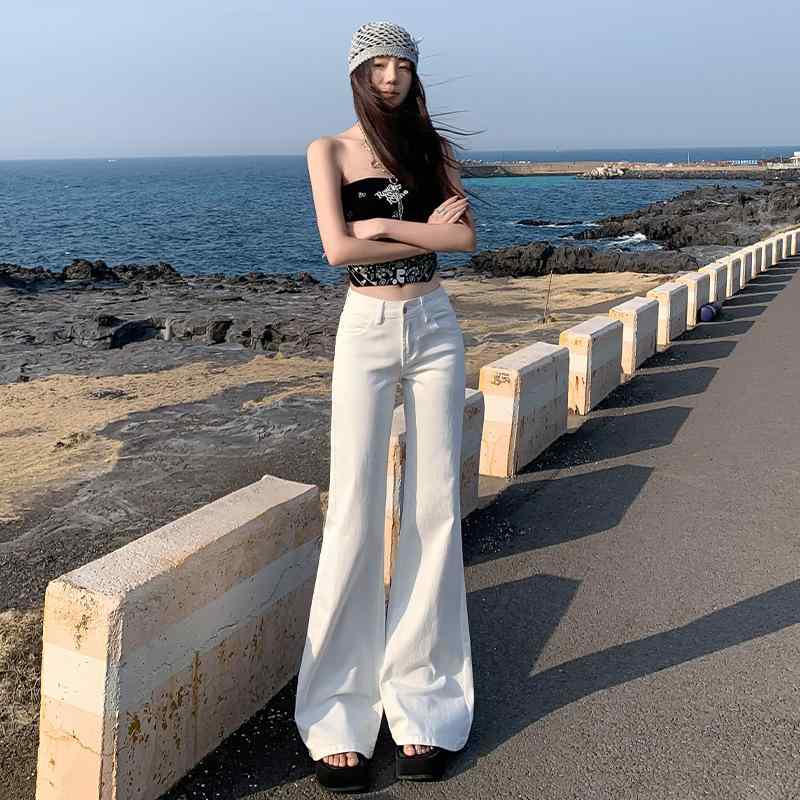 デニム レディース ローライズ ブーツカットパンツ 春秋 白色 黒色 ジーパン ジーンズ ボトムス ストレッチ 伸縮性 美脚 脚長効果 カジュアル 韓国ファッション