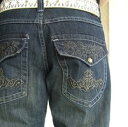 フラップポケットにトライバル刺繍入り! ローライズのブーツカットタイプなので脚長効果抜群! フロントポケット部分にスタッズを多めに打ってデザイン! 所々にクラッシュ加工を施しています。 バックポケットはフラップポケットで、トライバル刺繍を施しました。 大きめのフラップポケットなので小尻効果抜群です!Beach 65「脚長デニム」スタッズローライズブーツカット ヴィンテージデニム トライバル刺繍入 フラップポケットにトライバル刺繍入り!ローライズのブーツカットタイプなので脚長効果抜群!フロントポケット部分にスタッズを多めに打ってデザイン!所々にクラッシュ加工を施しています。 バックポケットはフラップポケットで、トライバル刺繍を施しました。大きめのフラップポケットなので小尻効果抜群です!