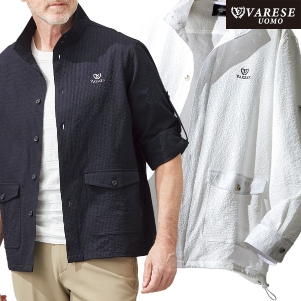 ヴァレーゼ・ウォモ サッカー素材の軽涼ロールアップブルゾン M L LL/ ジャケット カジュアル 大人 M L LL 春 夏 メンズ 紳士