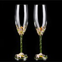 A014772高級ワイングラス ペア★花柄シャンパン グラス二点