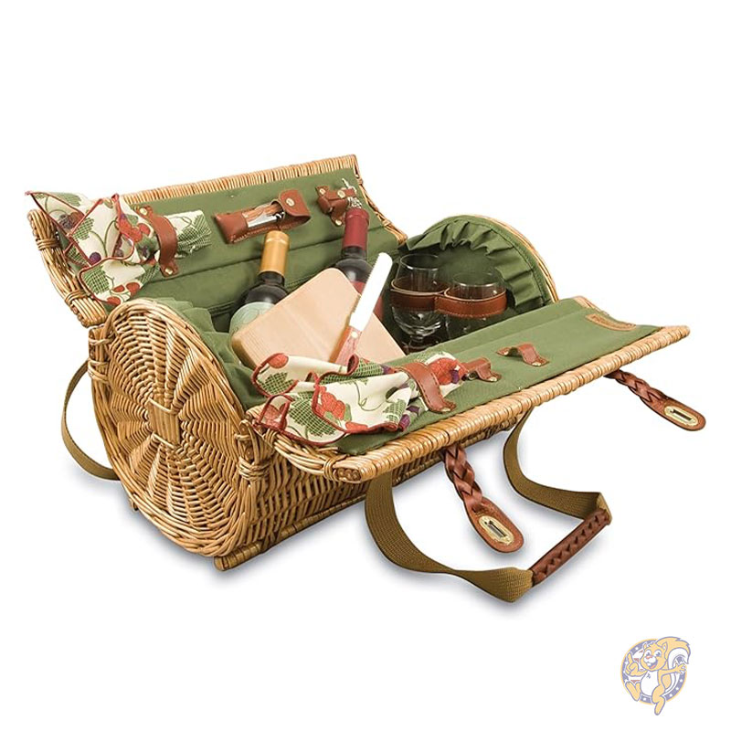 【最大2000円クーポン25日〜】ピクニックバスケット ヴェローナ ワイン&チーズ ピクニックバスケットセット 籐製ワイントート ピクニックセット付きワインバスケット (パイングリーン) 約 25.4cm × 45.7cm × 25.4cm PICNIC TIME ピクニックタイム