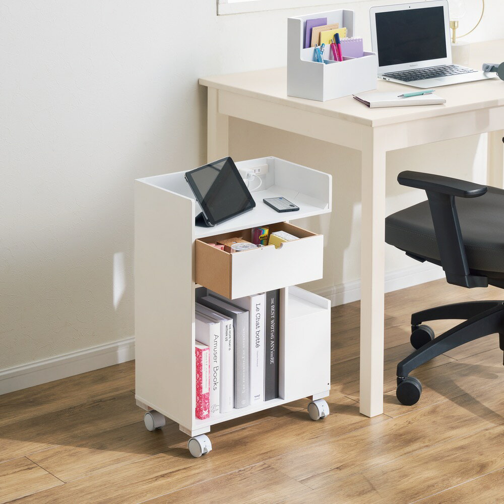 商品説明収納・作業・見栄えの全てが1台に詰まった収納ワゴン収納・作業・見栄えの全てがこれ1台で叶うキャスター付き収納ワゴン。省スペースでたっぷり収納できるのに加え、テーブルとしてもお使いいただけます。またキャスター付きなので、移動も楽々。さらにお部屋馴染みのいいデザインなので空間に気軽に取り入れやすいです。たっぷり収納&作業台として1台2役で活躍コンパクトながら1台2役で使える収納ワゴン。テーブルとしても使用できる天板スペースに加え、オープン収納・ブックラック・引き出し収納とタイプの違う4種類の収納を設けました。収納物や用途によって使い分けながらたっぷりまとめて収納していただけます。テーブルとしても使えるちょうどいいサイズの天板天板スペースは物を置くことはもちろん、テーブルとして使用することもできます。サイズは幅39cm×奥行28.5cmあるので、ちょっとした作業にも最適。さらに高さは57.5cmあるので、スツールやソファに座っての作業もしやすいです。物が取り出しやすく、日常を快適にするオープン収納サッと取り出したい物をしまうのに最適なオープン収納。取り出し頻度が多い物をしまったり、天板で作業に使用したノートパソコンをしまったりと、必要な時にすぐ取り出しができるので、日常動作を快適にしてくれます。雑誌や書類などの収納にぴったりなブックラック雑誌などがしまえる高さのあるブックラックスペース。雑誌・本・書類などがまとめて収納でき、読みたいときにサッと取り出していただけます。また収納場所に困る、高さのある物の収納場所としても最適です。細々した小物をまとめてしまえる引き出し収納細々した小物をまとめておくのにおすすめな引き出収納。大・小2杯設けているので、大きさや高さの違う物も整理しながら収納していただけます。また引き出しはそのまま簡単に取り出して持ち運べるので、中身だけまとめて違う場所に持って行きたい時にも便利です。気軽に動かせて移動が楽な隠しキャスター付き底にはストッパー付きの隠しキャスターを設置。たくさん収納した状態でも、軽い力で好きな場所へ移動できるのでお掃除も楽々です。またキャスターは、表からは見えないデザインのため、お部屋の景観を損なうことなくすっきり置いていただけます。くるりと回すだけで生活感を抑えた隠す収納に背面側にくるりと回すだけで、収納物が見えなくなり、まるでオブジェのようなサイドテーブルに。ノイズレスな見た目になるので、生活感を抑えたすっきりした空間にすることができます。急な来客時などでもサッと対応できるので、すぐに目隠ししたい時にも便利です。たっぷり収納できるのに邪魔にならないコンパクトサイズサイズはスペースを多くとらないコンパクトサイズ。省スペースで置けるので邪魔にならず、ちょっとしたスペースにも設置可能です。コンパクトなのに空きスペースを最大限に活かすことができ、スペースパフォーマンスも抜群です。幅広いシーンでお使いいただけますコンパクトなのに収納力も抜群なので、幅広いシーンで大活躍。リビングやベッドサイドで収納として使ったり、デスク下の収納ワゴン、さらにスツールと合わせてドレッサーとしてもお使いいただけます。お部屋や気分に合わせて変えられる2WAYデザインカラーはお部屋馴染みのいいホワイトとナチュラルの2色をご用意。引き出しがリバーシブルになっているので、バイカラーにしてアクセントにすることも、1色でシンプルに使うこともできます。またノイズレスですっきりしたフラットデザインなので、どんなテイストのお部屋にも合わせやすいです。サイズ幅42cm×奥行30cm×高さ57.5cm材質ホワイト:パーティクルボード(紙貼り) ナチュラル:パーティクルボード(メラミン貼り)脚部組立区分組立式お届け1〜4営業日以内の発送予定となります。(※予約販売を除く)8-14時・12-18時よりお届け時間のご指定が可能です。 備考【梱包サイズ】62cm×47cm×17cm【梱包重量】約15.5kg【商品重量】約14.2kg【耐荷重】天板:約10kg、オープン収納:約8kg、ブックラック:約6kg、引き出し(小):約5kg、引き出し(大):約5kg※組み立て時間:2人以上で約50分 【ORG】※プラスドライバーをご用意ください。