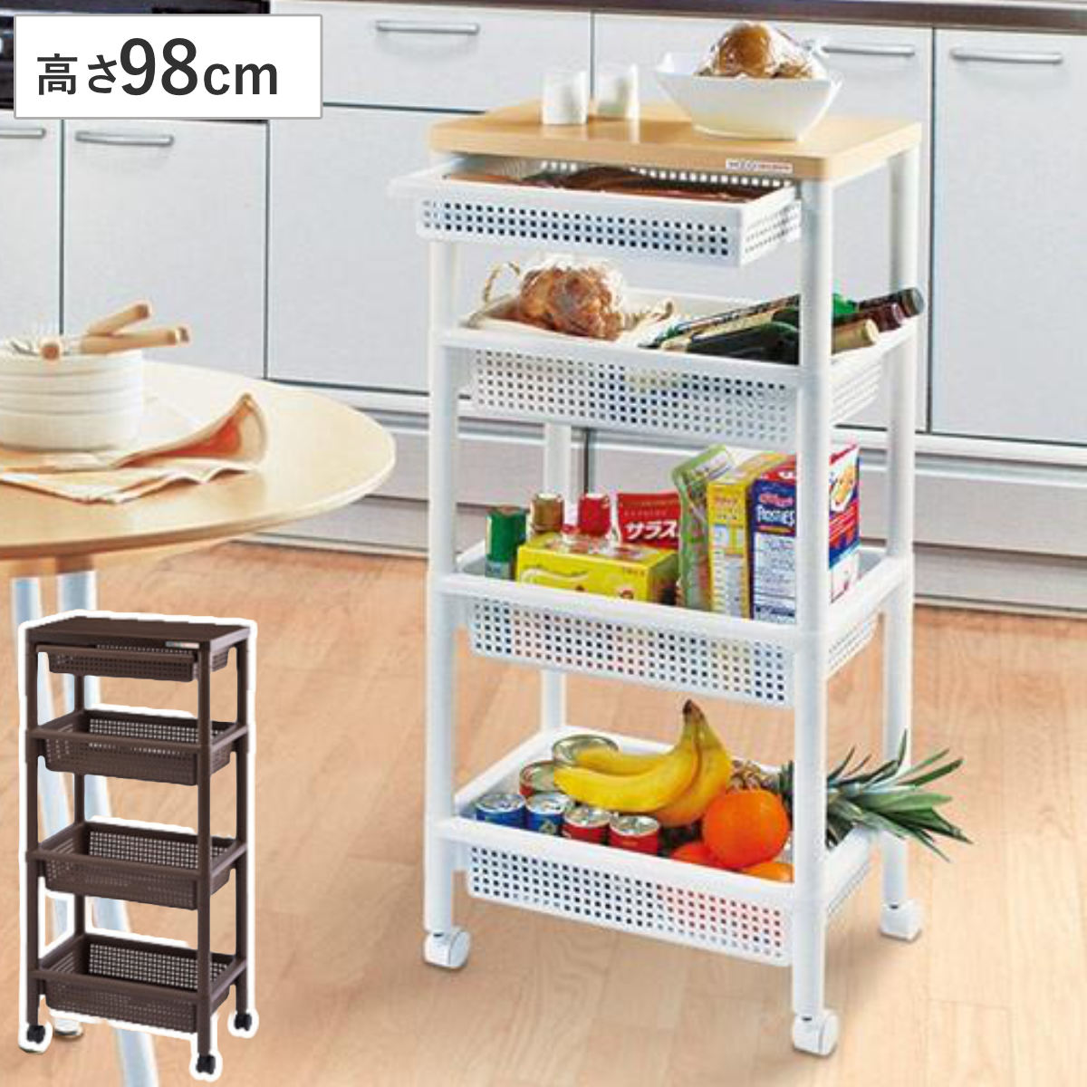 キッチンワゴン 引き出し付き 幅46 奥行30 高さ98 ( キャスター付き 天板付き 隙間収納 キッチン キッチンストッカー キッチンラック キッチンバスケット バスケットワゴン キッチン収納 ワゴン収納 ワゴン サイドラック )