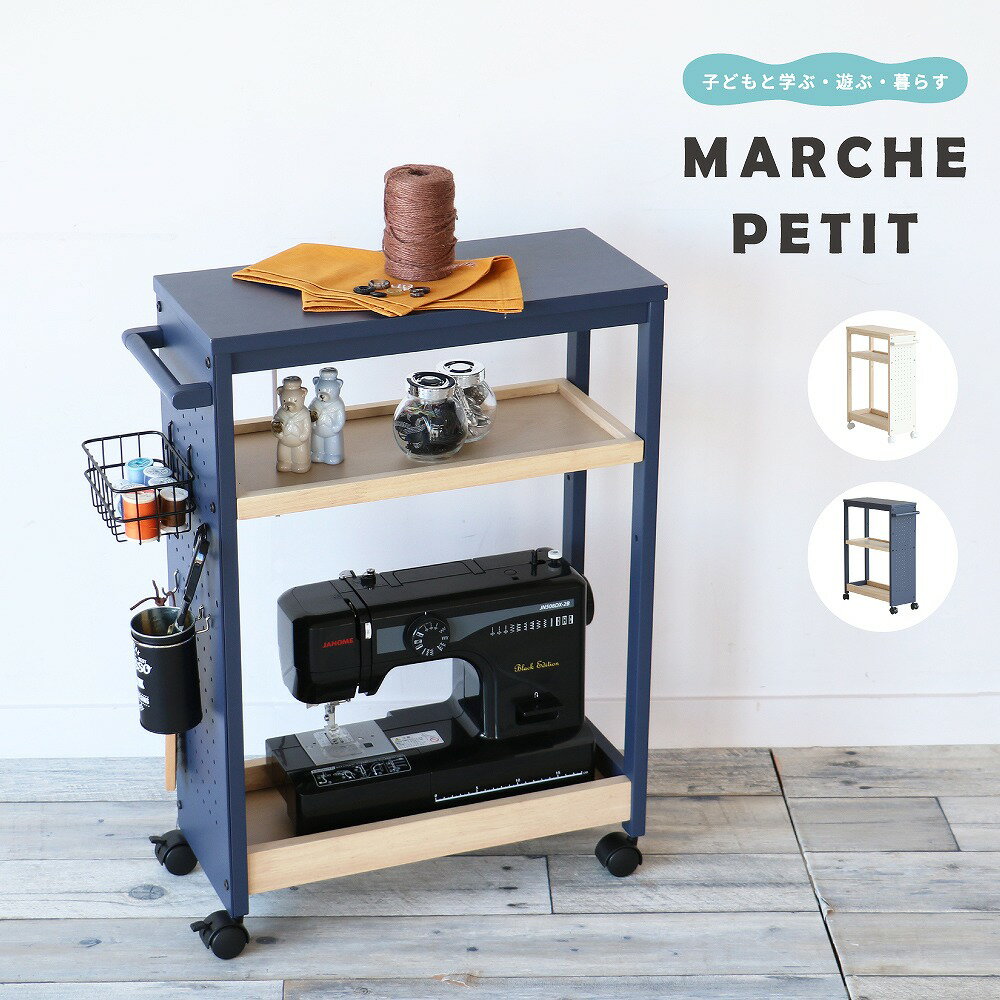 マルチワゴンに有孔ボードを合わせた便利な収納。 シンプルなフォルムと清潔感のあるカラーでいろんな場面で使えます。 有孔ボード(パンチングボード・ペグボード)とは、等間隔に小さな穴を開けた板で、穴にフックなどを取り付けることで収納を自由に構成することができます。 有孔ボードをワゴンの側板に採用したことで、市販フックやカゴを取り付けることが可能に。収納力がアップし、自分好みにカスタマイズできます。 DIYのように自分流にアレンジできる楽しさをプラスしたワゴンです。 有孔ボード穴:25mm間隔、直径5mm 一般的に流通している有孔ボードの規格ですので、市販のフックが使えます。 シンプルな形のワゴンなので、色々なところで使えます。 キッチンワゴンとして調味料や水を置いたり、ガレージで工具やスプレー缶を置いたり…移動できる収納があると、何かと便利ですよね。 カラーはアイボリー(IV)とネイビー(NV)の2色展開。 アイボリー(IV)は清潔感があり、キッチンやランドリーに合わせやすいカラー。 ネイビー(NV)は落ち着いた色で、ナチュラルな木の質感とのツートンがおしゃれな配色になっています。 北欧デザインのニュアンスを感じさせつつ、日本の暮らしにちょうどよくフィットする絶妙な色になっています。 ボルトやキャスターもそれぞれの色に合わせて選定し、全体のまとまりを良くしています。キャスターは4個のうち2個にストッパーが付いています。 ワゴン高さ:72cm 一般的なダイニングテーブルとほぼ同じ高さなので、サブテーブルとして使うこともできます。 ミシンの収納場所としてもおすすめ!使ったままの状態で置いておくのは見栄えが悪い…とお悩みの方に、サッと収納できる位置にこちらのワゴンを置いておしゃれ&便利に収納しましょう! ※お持ちのミシンが収納できるか、事前にお確かめください。 デスクワゴンとして書斎でも活用できます。本や筆記具を収納でき、有孔ボードを活用してケーブル類や小物を整理して置くこともできます。 デスクと高さが近いので、書類やパソコンの置き場にするなど、サブテーブルとしても使えます。 幅22cmのスリムな棚ですが、収納力はしっかり確保。 底棚の収納高さは最大43cmにでき、2Lペットボトルを立てて入れられる高さを確保。 ペットボトルや瓶など高さがあるものも立てて保管できます。 上の棚は2段階で高さが調節でき、小物を収納するときは高い位置にして取り出しやすく、少し大きいものを収納するときは低い位置にしてしっかり収納できます。 ワゴンを動かすときに使う取手は、シンプルな丸みで手に馴染む形。 フックやタオルを掛けるのにも使えます。 ILW-3440 使用イメージ ---シリーズ一覧はこちらから--- ↑ページTOPへ ↓カート近くに進む 沖縄県への配送は船便や陸路でのお届けの場合もございますため、納期に1週間以上かかる場合がございます。予めご了承ください。
