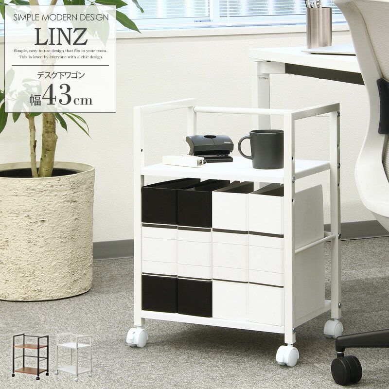 Linz/リンツ デスク下ワゴン IW-21幅43×奥行30.5×高さ60cm 小さくても存在感は抜群のデスク下ワゴン。リビング、オフィス、ダイニングetc...いろんなシーンで活躍します! 「一番はシンプルで使い勝手が良いこと。でも、おしゃれにもこだわりたい。」 そんな欲張りなあなたをきっと満足させてくれるシンプル&モダンシリーズ "Linz/リンツ"。 シリーズ内でも特に人気のデスク下ワゴン。 デスクやテーブルの下にスッと収まるコンパクトなサイズ感。 使いたい時にサッと出して、使わない時はデスクやテーブルの下に入れてしまえば、場所をとらず邪魔になりません。 キャスター付きだからどんな場所にもスイスイ移動できちゃうかわいいワゴンです。 デスクの横で勉強や仕事をサポートしたり、ソファの周りでサイドテーブルになったり、ベッド脇ではナイトテーブル、ダイニングやキッチンでちょっとした物置きや作業台として、いろんなシーンで活躍すること間違いなしです! ■リンツオフィスシリーズ PCデスク ワゴンラック オープンラック プリンターワゴン BROWN/ブラウン シックで落ち着いた印象のブラウンは、書斎のイメージにぴったり。 WHITE/ホワイト 明るく清潔感のあるホワイトは、すっきりとした心地よい空間を演出します。 商品名 Linz/リンツ デスク下ワゴン IW-21 カラー ブラウン(フレーム:ブラック、棚板:ブラウン木目) ホワイト(フレーム:ホワイト、棚板:ホワイト無地) サイズ 本体:幅43×奥行30.5×高さ60cm 材質 本体:スチール、粉体塗装 棚板:プリント紙化粧繊維板 キャスター:樹脂成型品 重量 約5.5kg 仕様 耐荷重:棚板約10kg 付属品:六角レンチ、スパナ 梱包サイズ 61×34×10cm/6kg 生産国 台湾 組立方法 お客様組立品 配送について 玄関先お届け 配達日時指定可 備考 沖縄県全域/離島への配送は別途送料が必要です(※送料は当店へご確認ください) リンツシリーズ 引出付きワゴン PCデスク デスク下ワゴンラック オープンラック プリンターワゴン ハンガーラック こちらもおすすめ デスクワゴン 幅30cm デスクワゴン 幅45cm デスクワゴン 幅45cm デスクワゴン 幅60cm 完成品デスクワゴン 目隠しワゴン 天板付き/天板なし 目隠しワゴン スリム 天板付き/天板なし