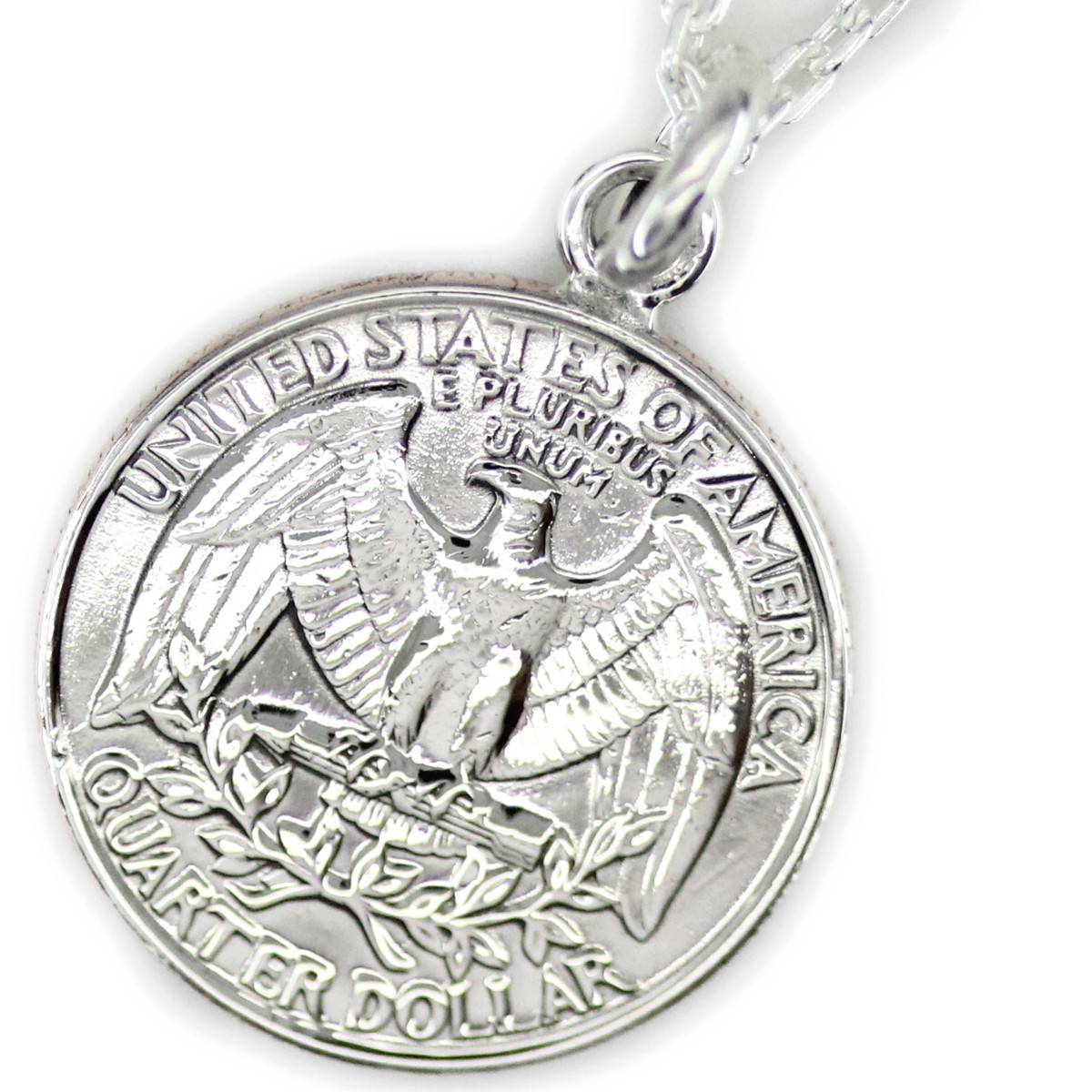 ペンダントトップ シルバー925 アメリカ古銭使用 ワシントン25セント硬貨ペンダント 表面:イーグル 裏面:ワシントン 1932年〜1964年 ネックレスチェーン付き 25CENT クォーターダラー|コイン 銀 Silver アクセサリー レディース メンズ