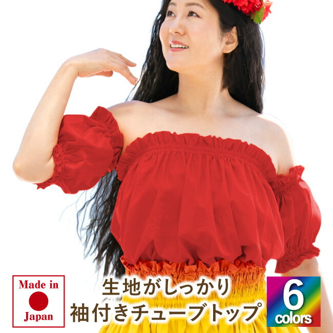 フラダンス 衣装[袖とチューブトップの2点セット]生地が丈夫な日本製 トップス ハワイアン フラトップス フリルブラウス ホワイト 白 赤 黒 黄 青 緑 レディース ミセス 子供 キッズ ジュニア 大人M L LL 4L 大きいサイズ フリーサイズ 波愛庵[flt005][5PU]