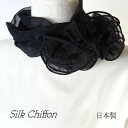 【ポイント10倍】横浜シルクスカーフ シフォン地フォーマルブラック無地 ワンタッチフラワー 日本製「ブラック」メム
