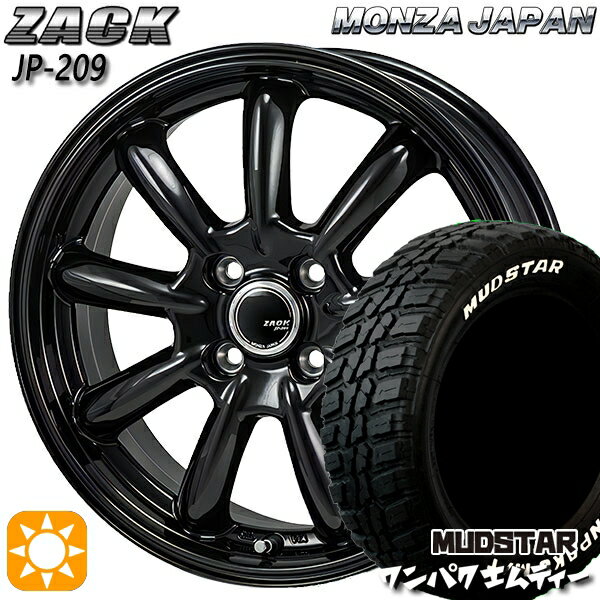 【取付対象】145/80R13 75S WL マッドスター ワンパク M/T ホワイトレター モンツァ ザック JP209 グロスブラック 13インチ 4.0J 4H100 サマータイヤホイールセット
