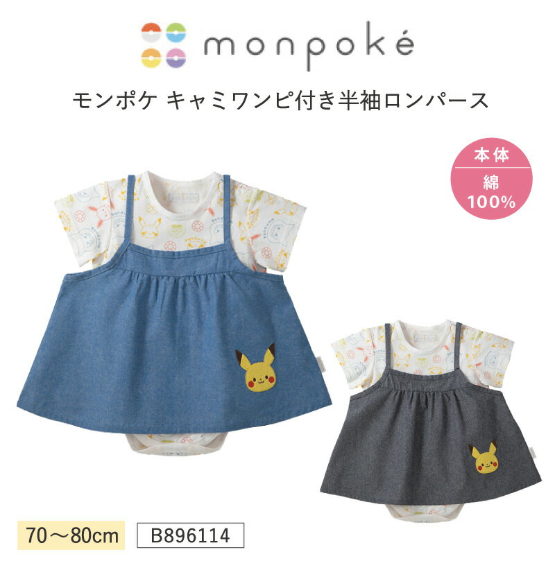 犬印 犬印本舗 モンポケ ベビー マタニティ キャミワンピ付き半袖ロンパース 綿100% monpoke (70〜80cm) B896114