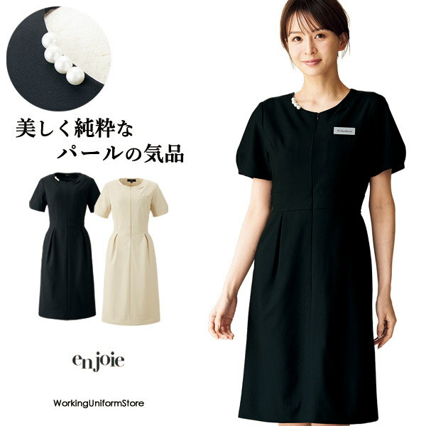 事務服 ワンピース 66552 enjoie アンジョア 事務員 受付 コンシェルジュ オフィスレディ カウンターレディ ショールーム 制服 大人かわいい