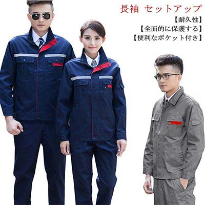 反射材テープ付き 作業服 上下セット セットアップ 通気性良い 男女兼用 作業着 長袖 大きいサイズ 作業服ワークマン ワークウェア レディース 耐磨耗 メンズ ユニフォーム ジャケット 送料無料
