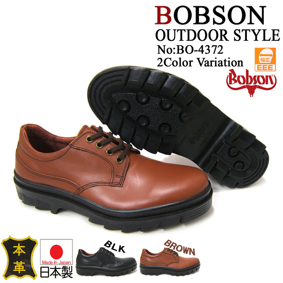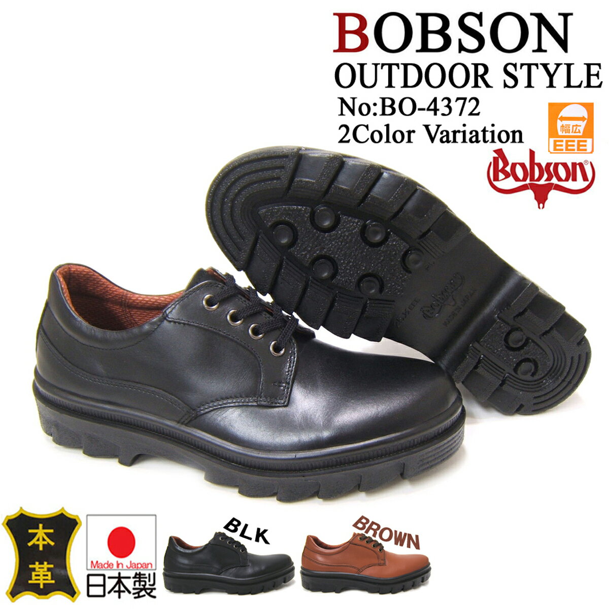アウトドアソール搭載のカジュアルモデル!BOBSON/ボブソン 紳士カジュアル タウンシューズ プレーントゥスタイル BO-4372 ブラック 3Eワイズ