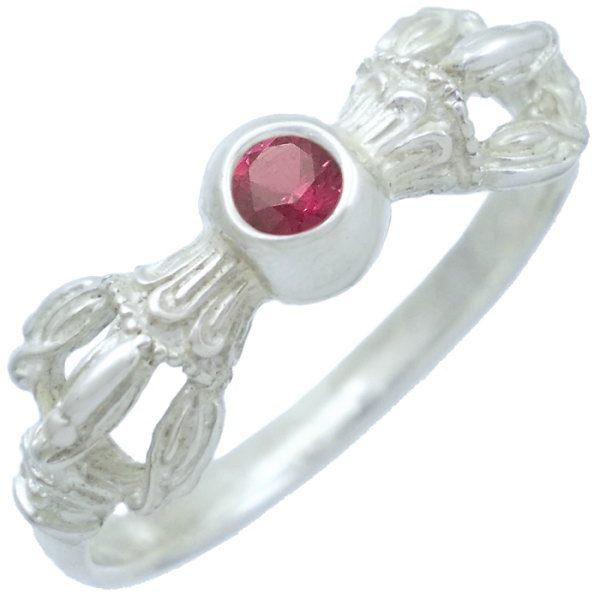 (7月)ルビー ホワイト バジュラ シルバーリング(指輪) 誕生石