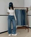 ティンバー隠しバンディングセミワイドヴィンテージウォッシュデニムパンツ デニムパンツ レディース|韓国 thepink|コーディブック