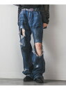 Shoowtime ハードクラッシュヴィンテージウォッシュデニムパンツ ショウタイム パンツ ジーンズ・デニムパンツ ブルー【送料無料】