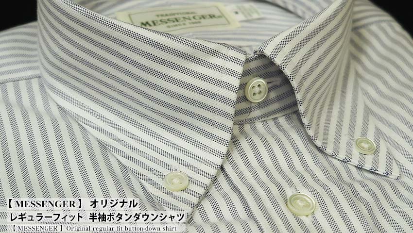 【 MESSENGER 】 オリジナル レギュラーフィット 半袖ボタンダウンシャツ ( 100537-27 ▲HBD-005 ) ブルーストライプ / ビンテージオックス 【楽ギフ_包装】 日本製