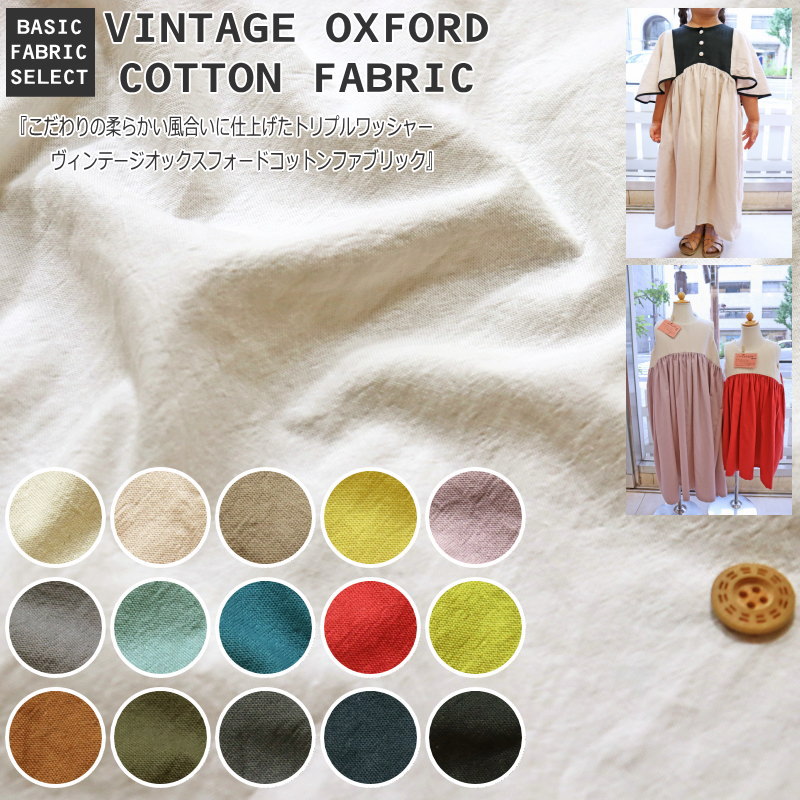 『こだわりの柔らかい風合いに仕上げたトリプルワッシャーヴィンテージオックスフォードコットンファブリック』●素材:コットン100% ●生地幅:約112cm【定番】無地/定番/ベーシック/洋服/子供服/バッグ/ポーチ/小物/インテリア/