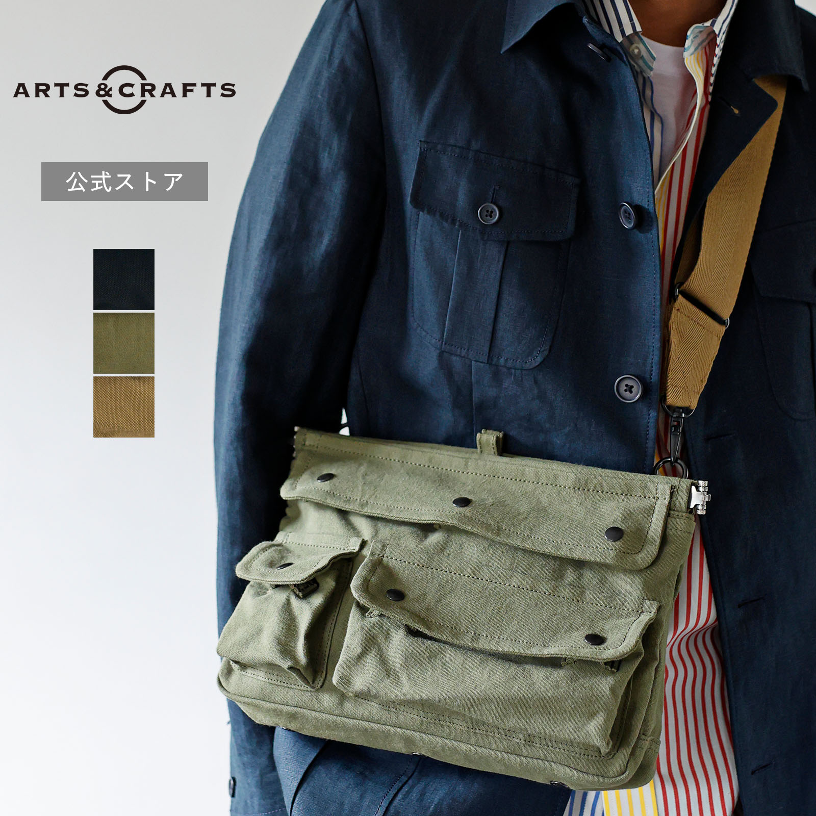 アイテム説明 70年代のフィッシングバッグをベースにした、クラシックなショルダーバッグ。口金仕様で開閉しやすく、硫化染めのヴィンテージオックスは経年変化を楽しめます。 仕様について ・ショルダーストラップは長さの調整ができ、取り外しも可能です。ショルダーテープには丸カンを付けています。 ・口元は口金により開けたままで固定ができるので、モノの出し入れがしやすい仕様となっています。 ・本体前側にはかぶせ仕様のポケットを3個付けています。かぶせはホックで留める仕様です。 ・底面のハトメは水抜きのためで、フィッシングバッグの仕様をモチーフとしています。 素材について ・本体には洗いをかけた先染め硫化ヴィンテージオックスを使用しています。硫化染めは酸化しやすく、使うほどに色が抜け独特の風合いになる経年変化を楽しめる素材です。 ・口金の素材にはステンレスと鉄を使用しています。バネの反発で開いた状態をキープできる利便性の高いバネ口金を採用しました。 商品情報 サイズ W310×H210×D65重量:470g 素材 本体生地:綿 100% 原産国 日本製 注意事項 ・直射日光や蛍光灯など長時間の照射により色褪せする事があります。 ・雨や水、汗などに濡れたり摩擦を受けると色落ち、淡色の物(特に白)には色移りしてしまう場合がありますのでご注意下さい。 ・製品が濡れた場合には乾いた布などで水気を拭き取り、風通しの良い場所で陰干しして下さい。 ・汚れた場合にはブラシ又は布等で落として下さい。 ・ベンジン類の使用は避けて下さい。 ・保管する際は湿度の高い所を避けて下さい。 ・価格改定等により、商品の値札に記載されている価格が、ご購入時の価格と異なる場合がございます。予めご了承ください。 ※お使いのPCモニター、スマートフォンの機種など、ご覧頂いている環境によって実際の色味と若干異なる場合がございます。予めご了承ください。 【関連キーワード】 ARTS&CRAFTS/arts&crafts/アーツアンドクラフツ/STANDARD SUPPLY/standard supply/スタンダードサプライ/VINTAGE OX/ヴィンテージオックス/FISHING SHOULDER M/フィッシングショルダーM/ショルダーバッグ/おしゃれ/カジュアル/シンプル/旅行/コットン/高級感/ブランド/日本製/メンズ/レディース/送料無料 アーツアンドクラフツ ヴィンテージオックス フィッシングショルダーM シンプル ショルダーバッグ スタンダードサプライ メンズ レディース 1104802 ARTS&CRAFTS VINTAGE OX FISHING SHOULDER MSize -サイズ- Detail -商品詳細- 口元は口金により開けたままで固定ができるので、荷物の出し入れがスムーズです。 イヤホンやお財布など、細かなものを整理しやすい3つのポケット付き。かぶせはホックで留める仕様です。 ストラップは長さ調整・取り外し可能。肩掛け・斜め掛け・バッグインバッグなど、シーンに合わせて使い分けられます。 Material -素材- 洗いをかけた硫化染め生地を使用。使うほどに味わい深い風合いへと変化していきます。経年変化を楽しめる素材です。 口金の素材にはステンレスと鉄を使用。バネの反発で開いた状態をキープできる利便性の高いバネ口金を採用しました。 Color -カラーバリエーション- 【公式ストア】アーツアンドクラフツ ヴィンテージオックス フィッシングショルダーM シンプル ショルダーバッグ スタンダードサプライ メンズ レディース 1104802 ARTS&CRAFTS VINTAGE OX FISHING SHOULDER M 1104802 ARTS&CRAFTS VINTAGE OX FISHING SHOULDER M 6