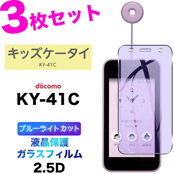 ky41c ky-41C キッズケータイ ブルーライトカット ガラスフィルム 3枚セット フィルム docomo ドコモ 画面保護 保護 強化ガラス スマホ おすすめ 液晶保護 スマホフィルム 携帯 携帯フィルム 透明 クリア シートキッズ 学校 子ども 専用 こども ガラス フィルム