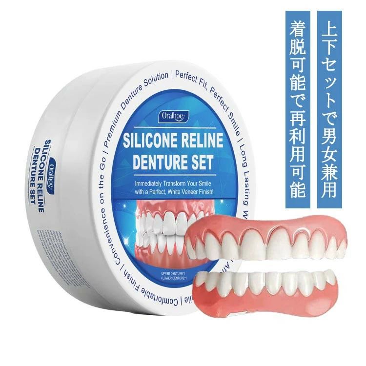 【送料無料】つけ歯 上下セット シリコン 入れ歯 付け歯 上下 上歯 下歯 義歯 調整可能な付け歯 着脱可能な美白付け歯 美容 仮歯 レディース メンズ 再利用 装着簡単 ポータブル 男女兼用
