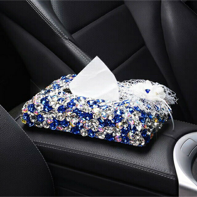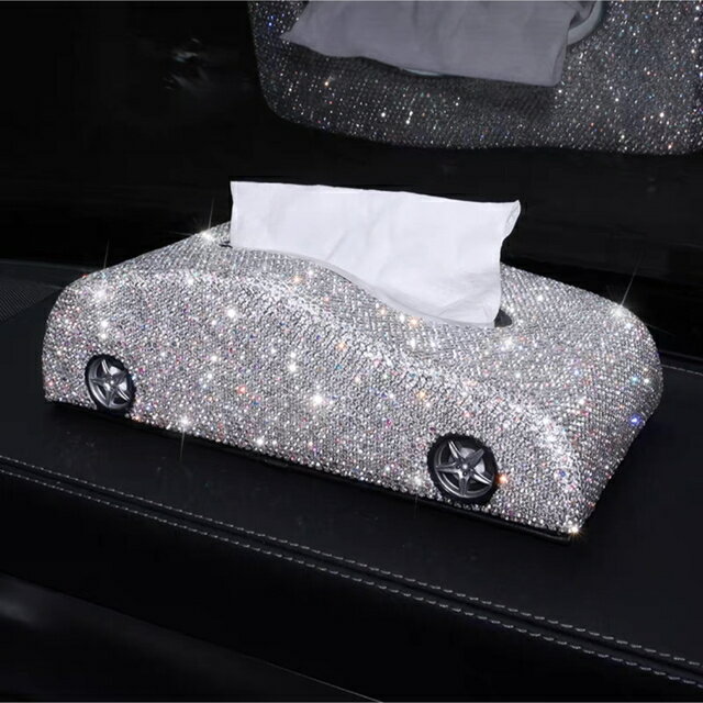 A018907ラインストーン飾り 高級感 上品ティッシュケース 車用 キラキラ