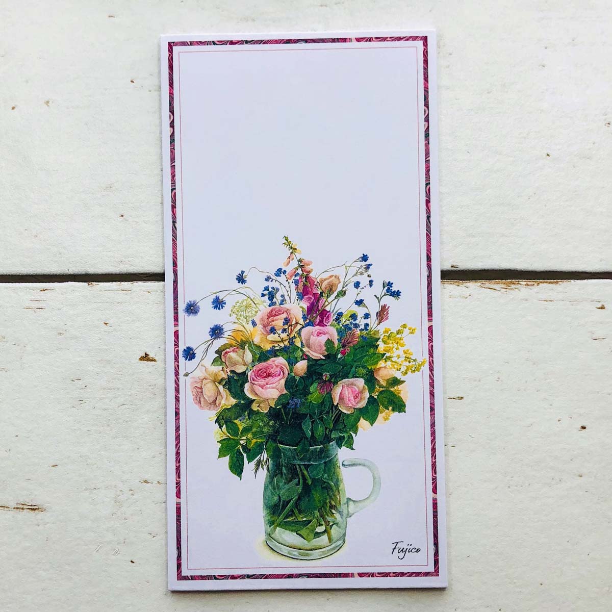 橋本不二子が手掛けたローズ柄ブロックメモ 繊細なタッチで描かれたバラのイラストが何とも美しいブロックメモ。世界で活躍する水彩画家『橋本不二子』が手掛けた4種の作品を各30枚、120枚綴りに仕上げました。普段のメモとしてはもちろん、ちょっとしたギフトカードやメッセージカードとしてもお使いいただけます。ブロックメモ 不二子ローズ橋本不二子が手掛けたローズ柄ブロックメモ橋本不二子が手掛けたローズ柄ブロックメモ繊細なタッチで描かれたバラのイラストが何とも美しいブロックメモ。世界で活躍する水彩画家『橋本不二子』が手掛けた4種の作品を各30枚、120枚綴りに仕上げました。普段のメモとしてはもちろん、ちょっとしたギフトカードやメッセージカードとしてもお使いいただけます。在庫がなくなり次第、終了となります。あらかじめ、ご了承ください。※商品画像やデザインはイメージです。モニターなどの影響により、実際の商品とは異なる場合がございます。
