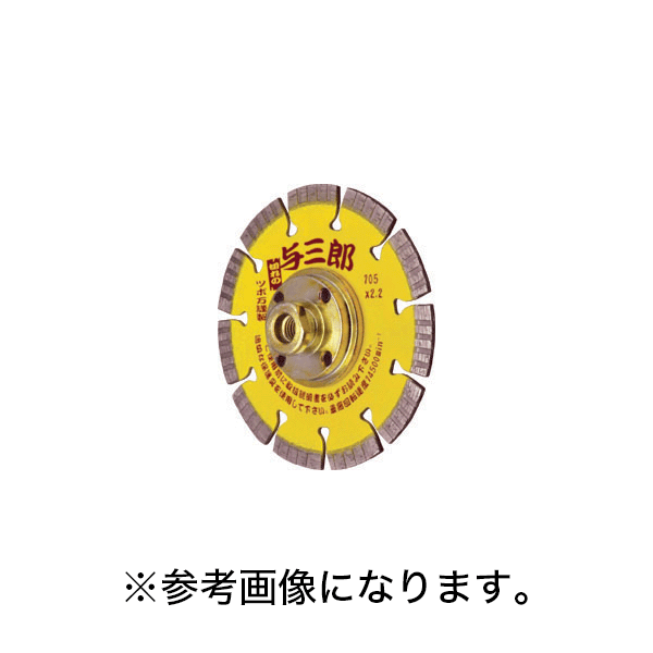 ※画像1はイメージです。 ↓5枚+1枚サービス(計6枚)の価格です。用途:コンクリート・硬質磁器タイル・石材など 切れの与三郎サイズ表 外径×チップ厚×チップ高×取付穴径 商品記号 コード 税別価格 105mm×2.0×7×20 YB-105 11055 \8,100 125mm×2.0×7×22 YB-125 11056 \11,700 150mm×2.0×7×22 YB-150 11057 \17,000 180mm×2.0×7×25.4 YB-180 11058 \20,000 200mm×2.0×7×25.4 YB-200 11059 \22,500 255mm×2.0×7.5×25.4 YB-255 11060 \25,200 305mm×2.7×7.5×30.5 YB-305 11061 \28,800 穴径22mmは20mmリング付き 穴径25.4mmは22mm・20mmリング付き 穴径30.5mmは25.4mm・22mm・20mmリング付き 切れの与三郎 与三朗