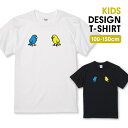 \半額クーポン配布中/ Tシャツ キッズ こどもサイズ オウム2 インコ 小鳥さん イエロー/ブルー ゆるい かわいい カワイイ サイズ 100 110 120 130 140 150 半袖 綿 100% コットン 白Tシャツ 黒Tシャツ ホワイト ブラック こども服 子供サイズ 子供服 プリントtシャ