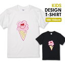 \半額クーポン配布中/ Tシャツ キッズ こどもサイズ 線画 ゆるキャラ アイス かわいい カワイイ ポップ アメカジ サイズ 100 110 120 130 140 150 半袖 綿 100% コットン 白Tシャツ 黒Tシャツ ホワイト ブラック こども服 子供サイズ 子供服 プリントtシャツ よれ