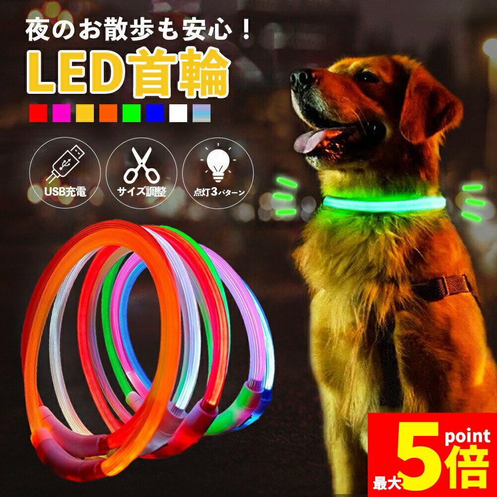★期間限定!ポイント5倍&10倍★光る首輪 犬 点灯 首輪 光る led 散歩 USB充電式 LED光る首輪 LEDライト首輪 猫 ワンちゃんの安全対策 サイズ調整可 発光首輪 事故防止 ペット用 小型犬 中型犬 大型犬 ぺット用品・ペット