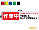【マグネットステッカー】作業中 横長型46cm工事現場 取付 施工 現調 ユニック キャンター トラック 高所作業車 クレーン 運送業 配達 リテラ 取り組み 対策 事故防止 サイン 標識 表示 大型車 配送 セーフティ アピール 交通安全