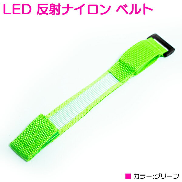 便利なUSB充電タイプの反射ベルト! LED 反射 ナイロンベルト スポーツバンド 夜間バンド グリーン/緑 【反射ベルト LEDベルト 夜光ベルト 事故防止 交通安全 ランニング ジョギング ウォーキング サイクリング 夜光バンド 反射バンド 釣り セーフティバンド】